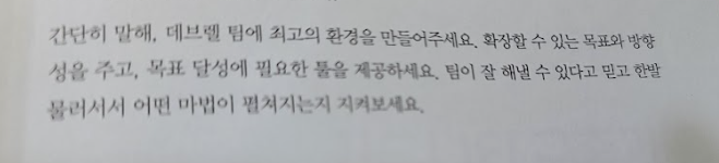 이 책은 1) 데브렐을 도입하고자 고민하는 조직이나 리더 들에게 효과적인 전략과 운용방안을 소개하고 있지만, 2)새로운 조직을 셋업하기 위한 경영서로도 읽을만한 가치가 있는 책이다.