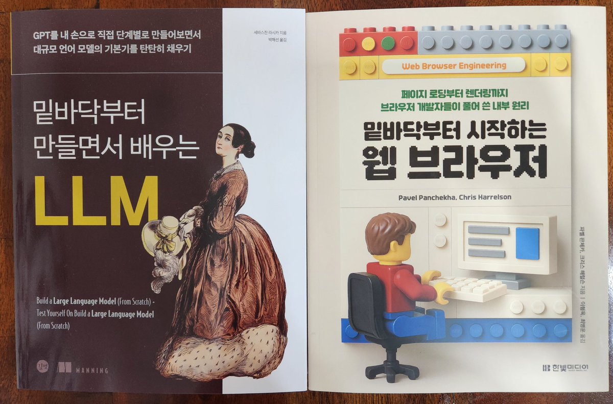 특히 최근 주목받는 두 권이 있는데, 하나는 길벗에서 나온 <밑바닥부터 만들면서 배우는 LLM>, 또하나는 한빛미디어에서 나온 <밑바닥부터 시작하는 웹 브라우저>이다. 둘다 파이썬으로 LLM과 웹브라우저를 만든다. 밑바닥 시리즈는 딥러닝아닌가 싶긴 한데.. 여하튼 결국 개발자/엔지니어에게 학습 경험이란 뭔가를 따라하면서 만들어 보고, 그것을 수정하면서 고장냈다가 고쳐보고, 그 과정에서 전체적인 모델이 마음속에 그려지는 과정이지 않을까하는 생각이 들었다. 하긴 소프트웨어의 개발 풀 과정을 경험해 보기 위해 사이드 프로젝트를 하는 것 아닌가.