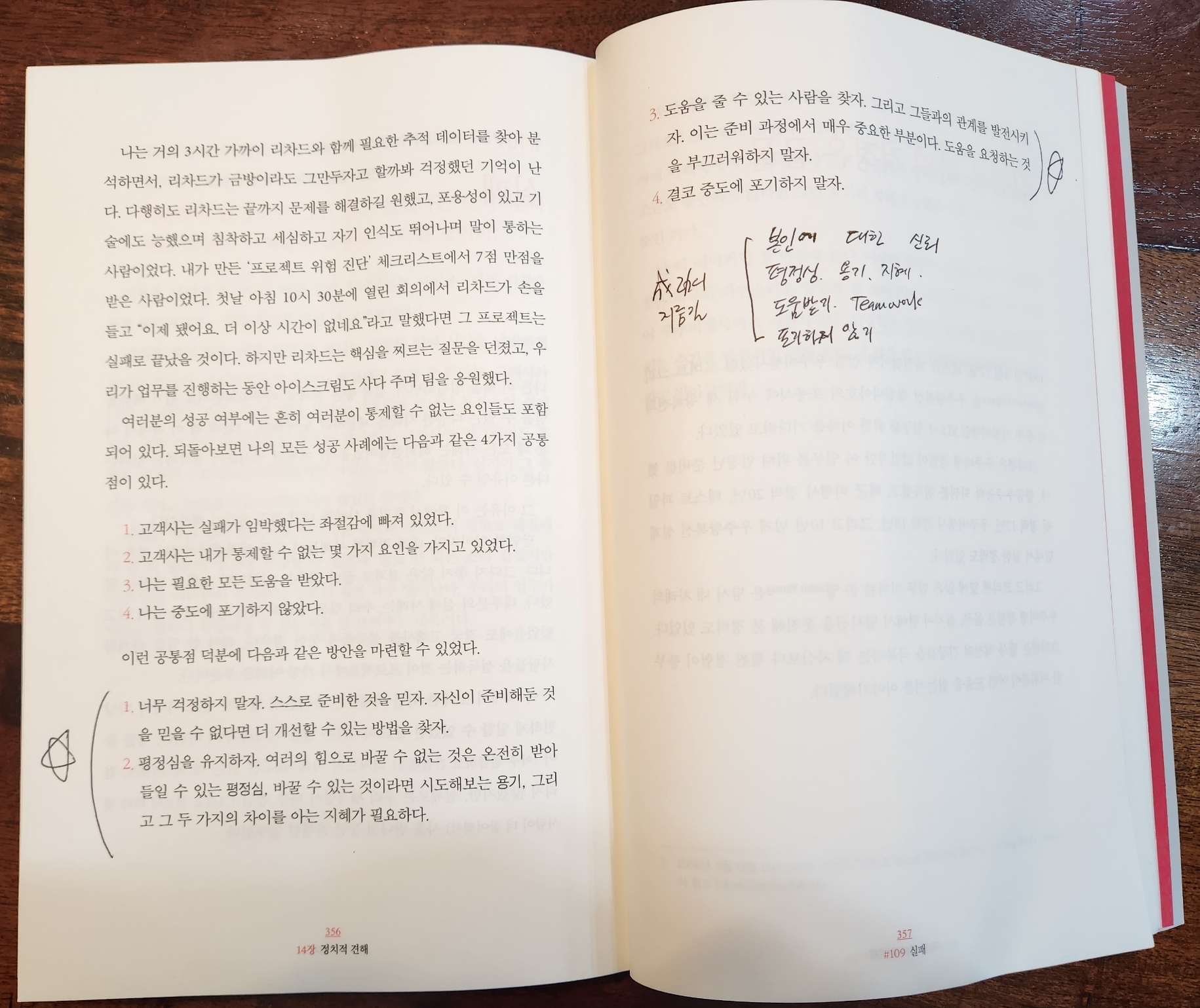 이 책의 역자분이 남긴 '옮긴이의 글'에서 가슴에 와닿는 문장이 있었는데 '문제를 올바르게 해결한다는 것은 결국 어디를 관찰할 것인지, 어떤 것을 무시할 것인지를 결정하는 과정'이다. 기본이지만, 늘 기본 지키기가 쉽지만은 않다.
