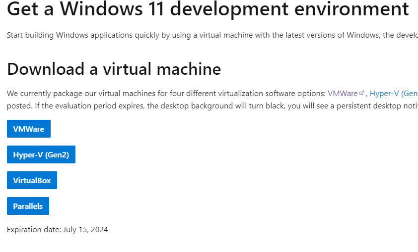 이번에 개발 환경 구축 가이드를 작성할 일이 있어서..윈도우 VM 을 MS에서 제공해 줬던 것이 기억이 나서 찾다가 알게되었습니다. 예전에 MS는 브라우저 호환성 검사용으로 VM이미지를 제공해 주었습니다. 그런데 이번에 찾아보니 마이크로소프트는 아예 윈11 개발환경을 VM이미지로 만들어서 무료로 제공하고 있습니다.