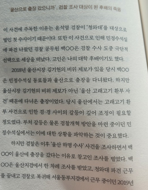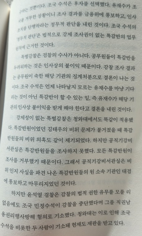조국 장관에 대한 비판이 있을 수 있겠지만, 세상만사 양쪽 입장과 이야기를 다 들어보고 판단을 해야 한다고 생각합니다. 이 책에는 민정수석실의 유재수 감찰 중단 외압 사건, 울산 하명 수사 사건, 조국 일가의 입시 부정 사건에 대해 보좌관이었던 필자의 입장을 들을 수 있습니다. 그 과정에서 계속 이름이 나오는 그 이름 '윤석열' 검사